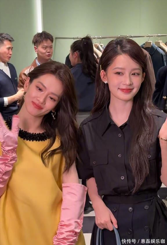 陈昊宇穿了一件短款上衣和半身裙,露出了细细的腰,妆容看起来很有活力,短发显得俏皮又灵动,笑起来特别有感染力。两个站在一起,一个就像冷冷的月光,一个就像温暖的阳光,就算穿着一样的衣服,风格却完全不一样。光看造型都能给满分,但仔细一比生图才发现,李沁的颜值真的是顶呱呱。